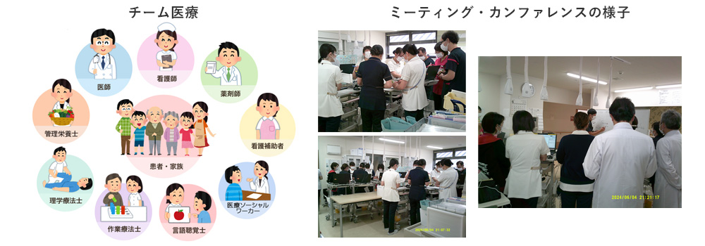 医師、看護師、薬剤師、栄養士、理学療法士、作業療法士、言語聴覚士、ケアワーカー、医療ソーシャルワーカーと、9つの分野の専門家が質の高いチーム医療を展開しています。