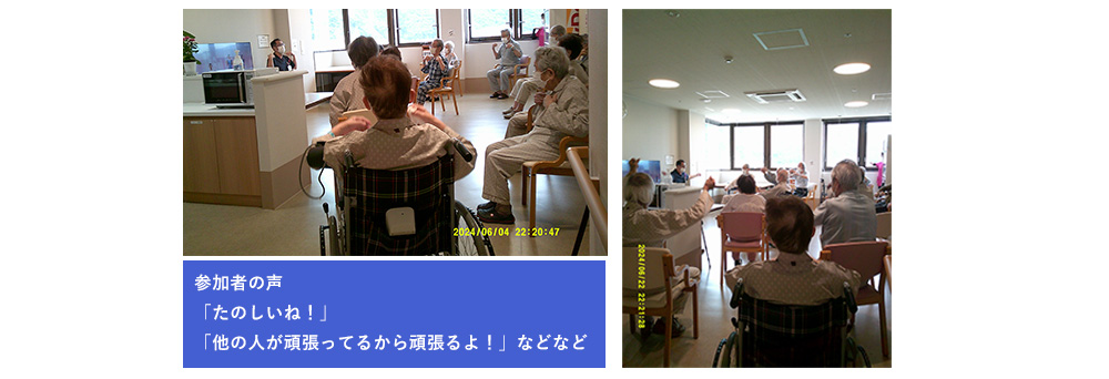 退院後、いきいき100歳体操やデイサービス等への参加がスムーズに行えるよう、仲間づくりなどを目的に入院時より集団の中での活動参加を促していきます。