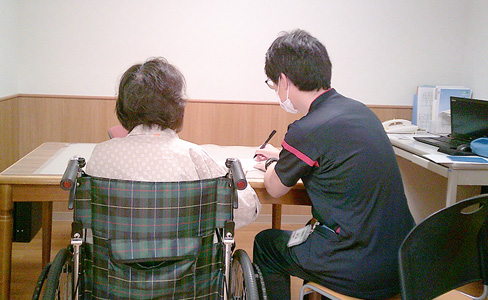 お一人お一人の身体能力に合わせ運動の習慣作りをお手伝いします。退院したらリハビリは終わりではありません。継続し運動が行えるよう自主トレーニング指導を行っています。